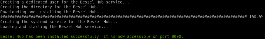 Cette commande tĂ©lĂ©charge et exĂ©cute notre script install-hub.sh. Le script installe le dernier binaire et crĂ©e un service systemd pour le maintenir en cours dâexĂ©cution aprĂšs le redĂ©marrage.