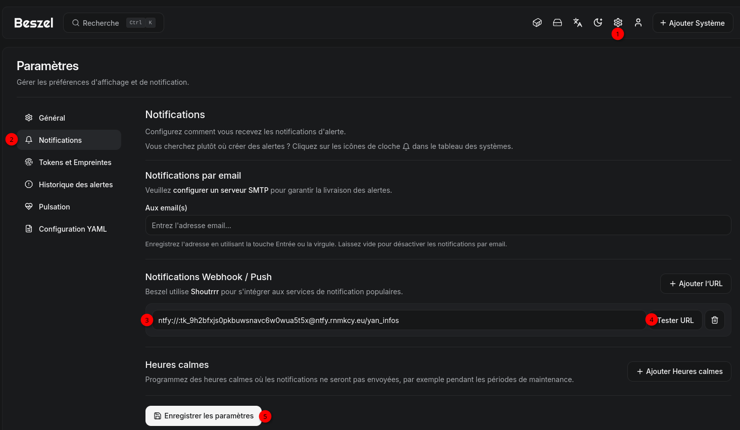 Beszel intĂšgre un systĂšme dâalerte simple mais efficace. Il se configure au niveau de chaque systĂšme (ou au niveau global), câest-Ă -dire chaque agent, mais via lâinterface du serveur.
