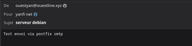 echo "Test envoi via postfix smtp" | mail -s "serveur debian" votre_adresse_mail