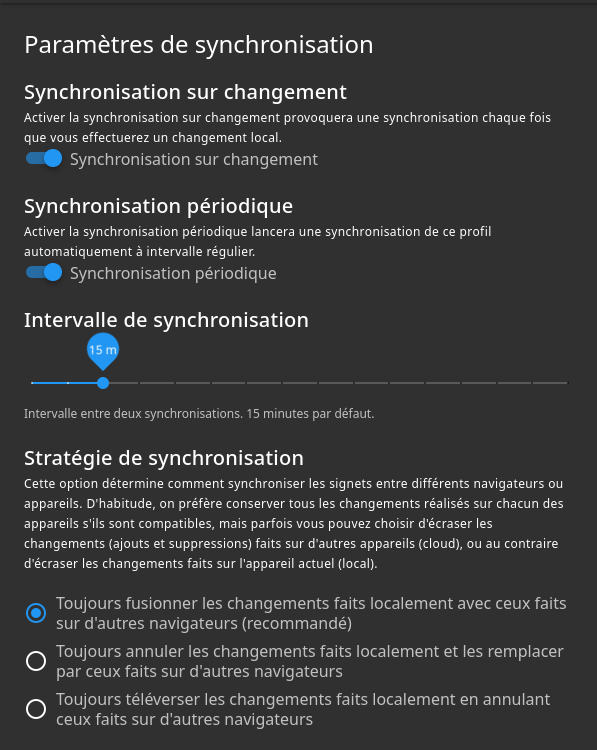 En mode fusion, les modifications de votre navigateur local sont fusionnées avec les modifications des autres navigateurs.