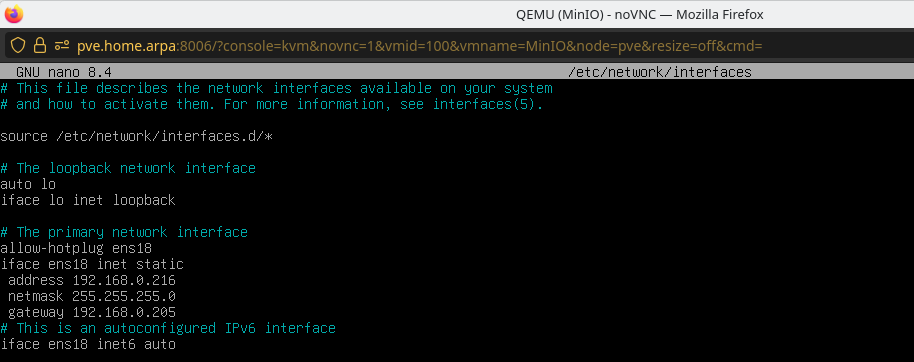 Proxmox VM minio Debian 13