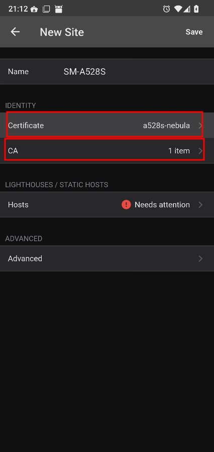 Envoyer a528s-nebula.crt et ca.crt sur votre téléphone.