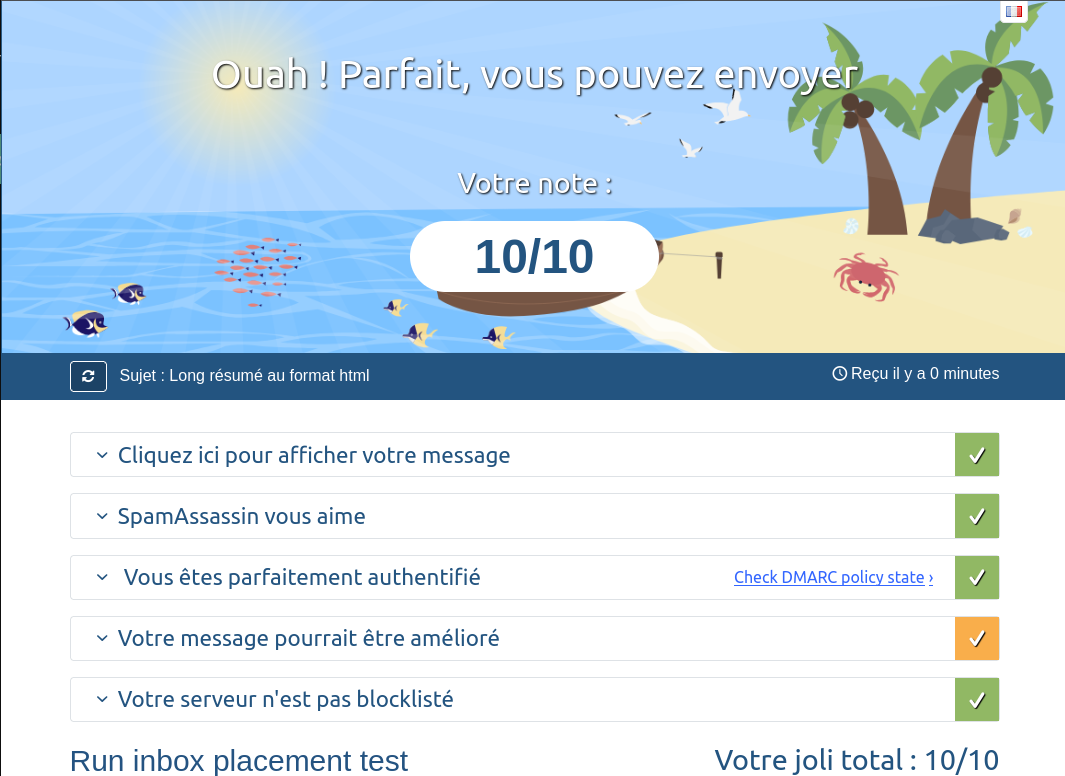 Allez au testeur de courrier https://www.mail-tester.com/.