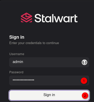 En utilisant les identifiants fournis, connectez-vous à votre Stalwart