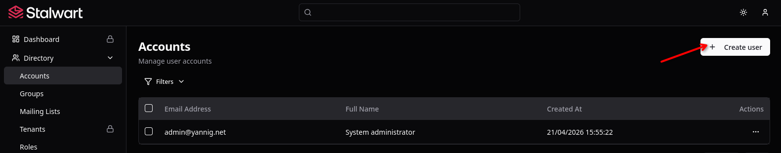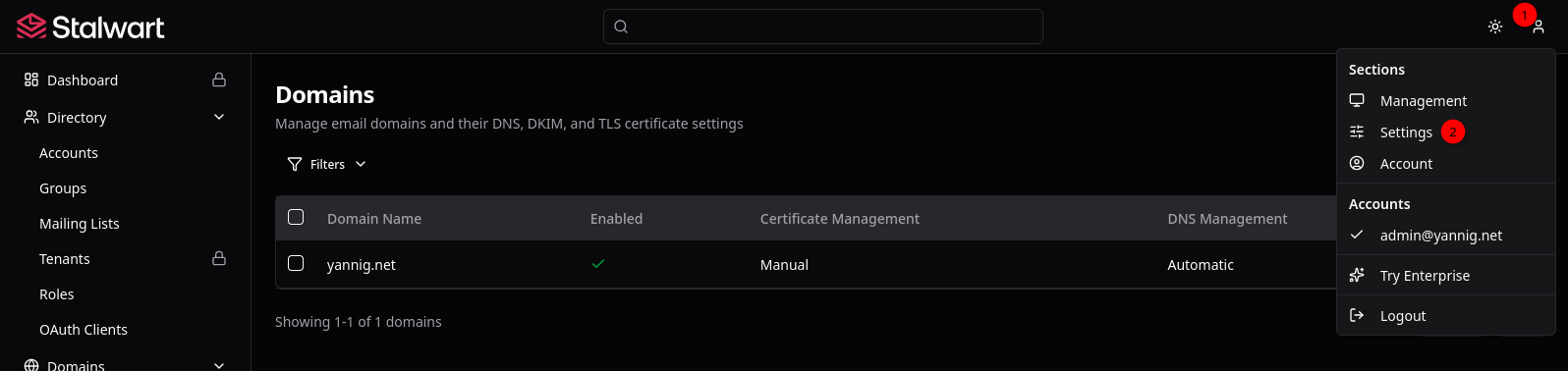 Connectez-vous au panneau d’administration de Stalwart avec un compte administrateur.