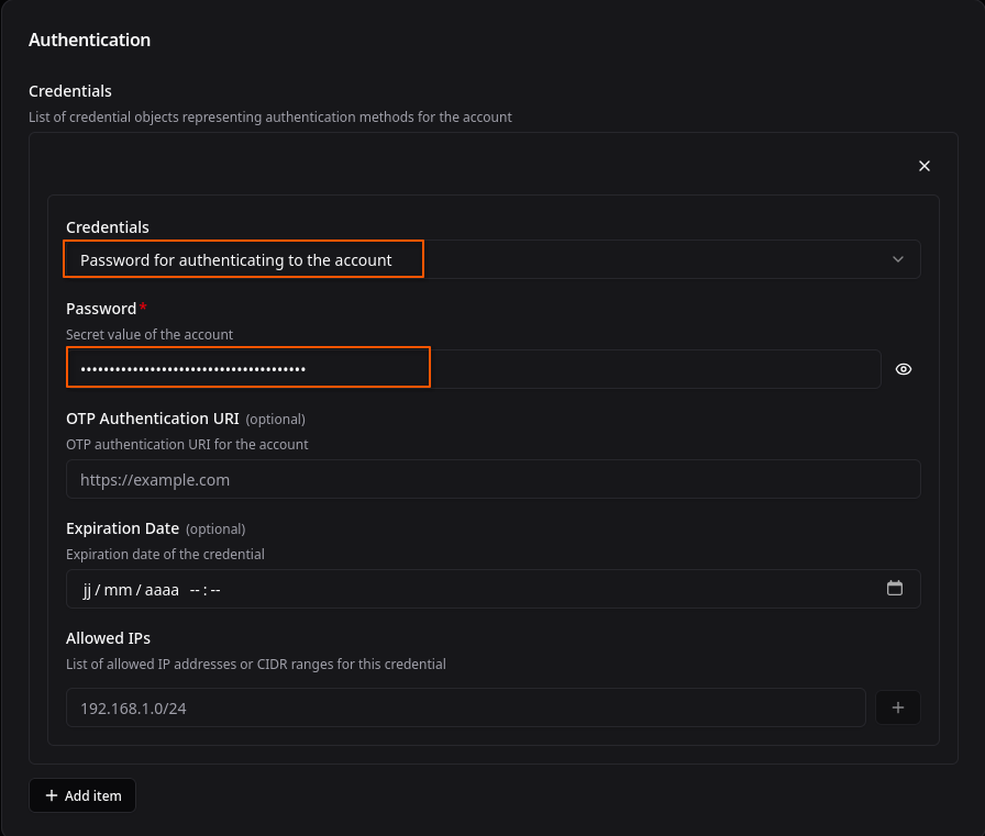 /etc/stalwart/stalwart.env and restart the service to pin a credential.