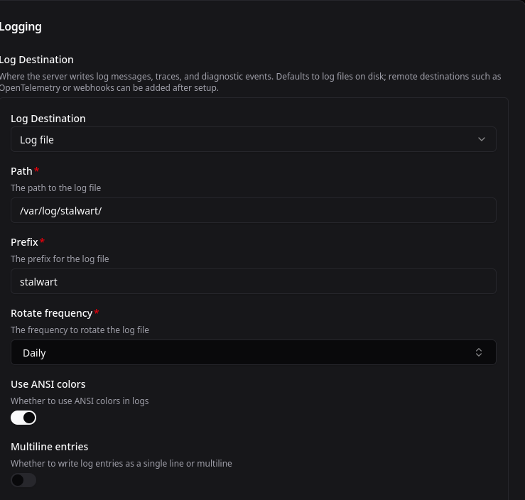 Aucun argument n’est requis. Le script suit la norme de hiérarchie du système de fichiers et place le binaire sous /usr/local/bin/stalwart, le fichier de configuration sous /etc/stalwart/config.json, variables d’environnement sous /etc/stalwart/stalwart.env, données d’application sous /var/lib/stalwart/et de journaux fichiers sous /var/log/stalwart/.