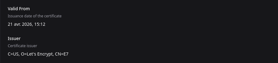 [jeu. 23 avril 2026 16:50:28 CEST] Installing full chain to: /etc/ssl/private/fullchain.pem