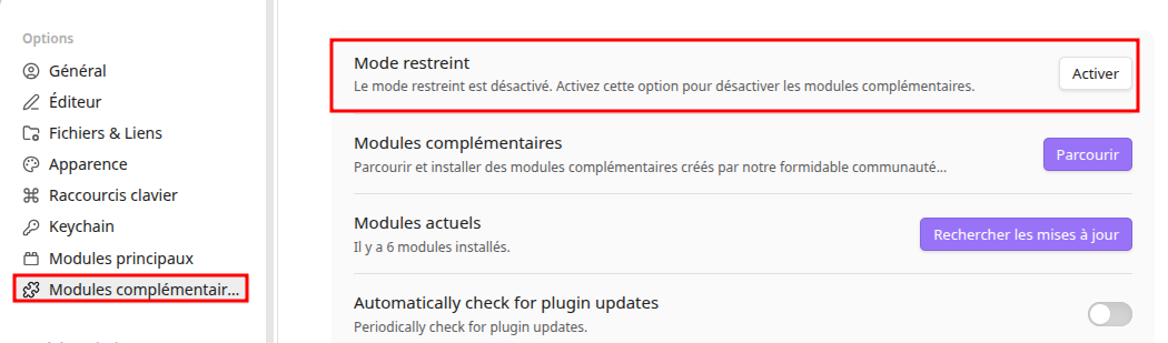 Activer les “Modules complémentaires”