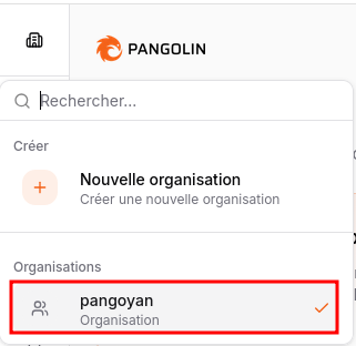 - Cliquez sur « Créer une organisation » nommée pangoyan