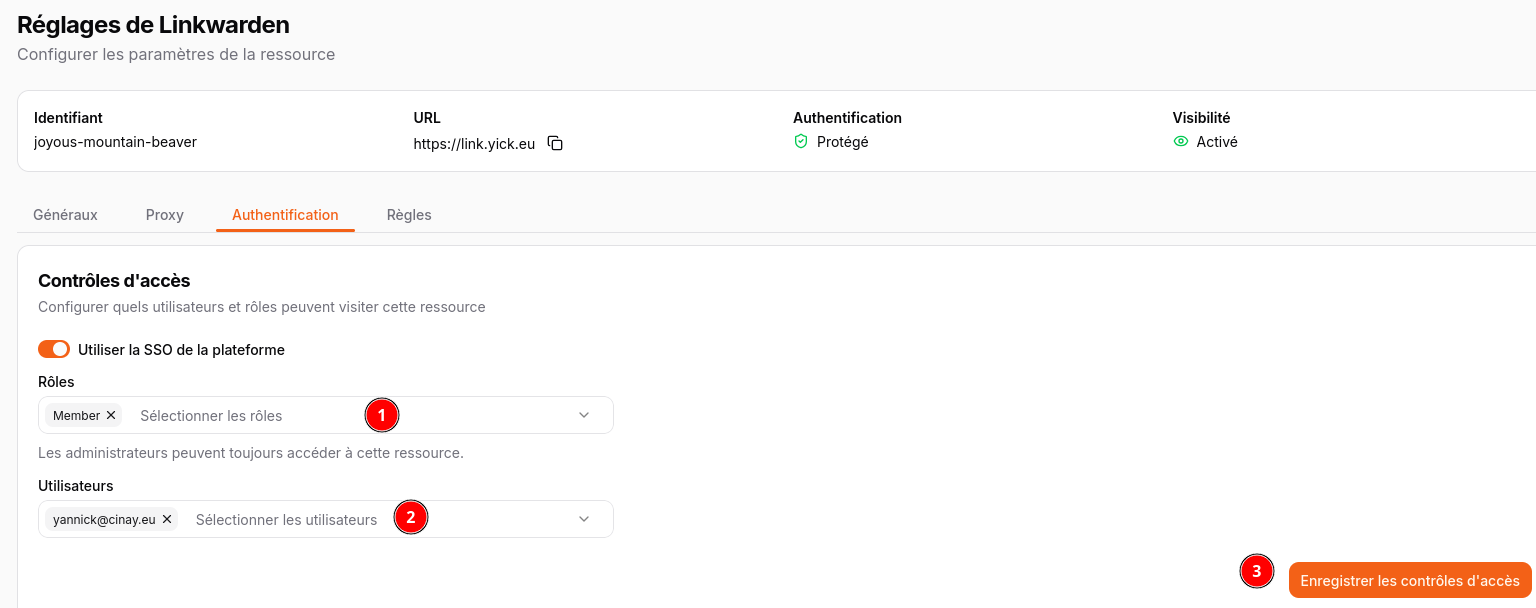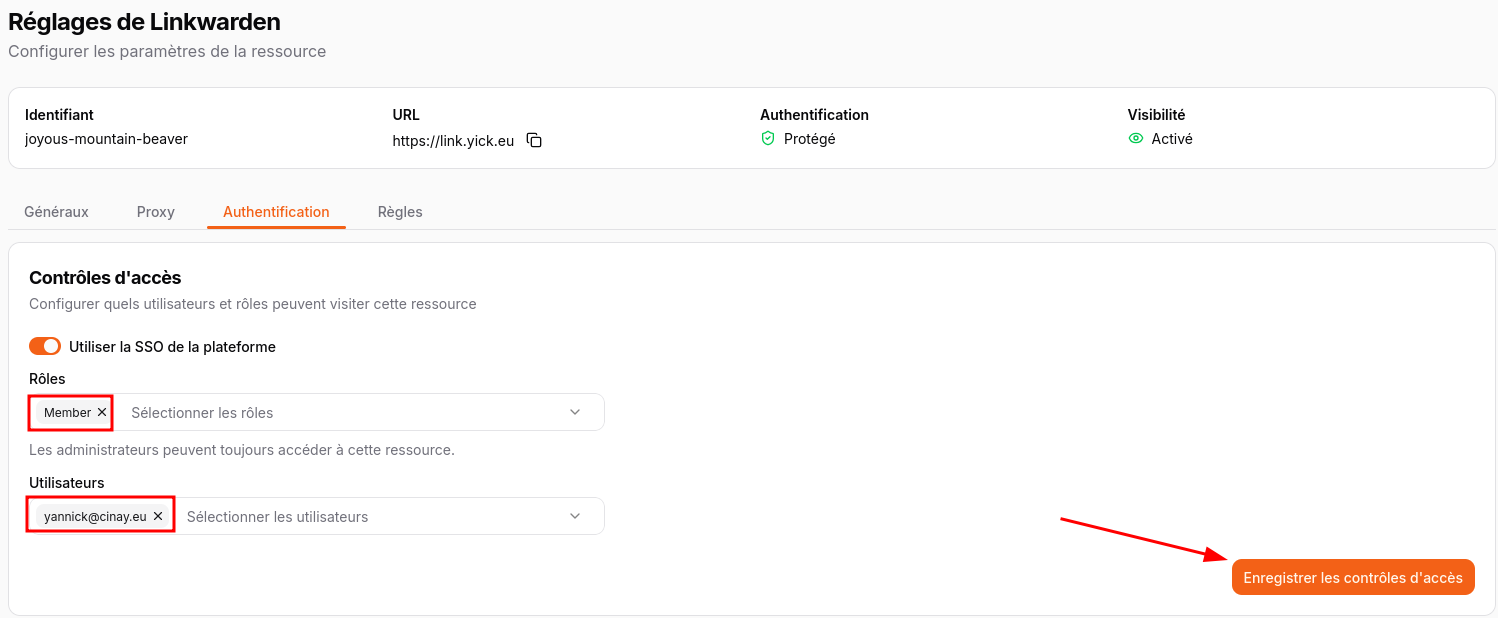 N’oubliez pas de sauver en cliquant sur Enregistrer les contrôles d’accès.