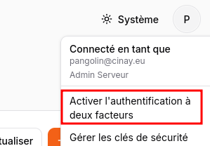 Un utilisateur aura la possibilité d’activer la 2FA. Il devra cliquer en haut à gauche sur son e-mail