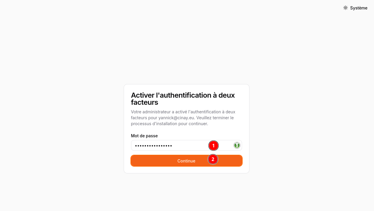Lors de la prochaine connexion,l’utilisateur devra fournir le code pour la double authentification