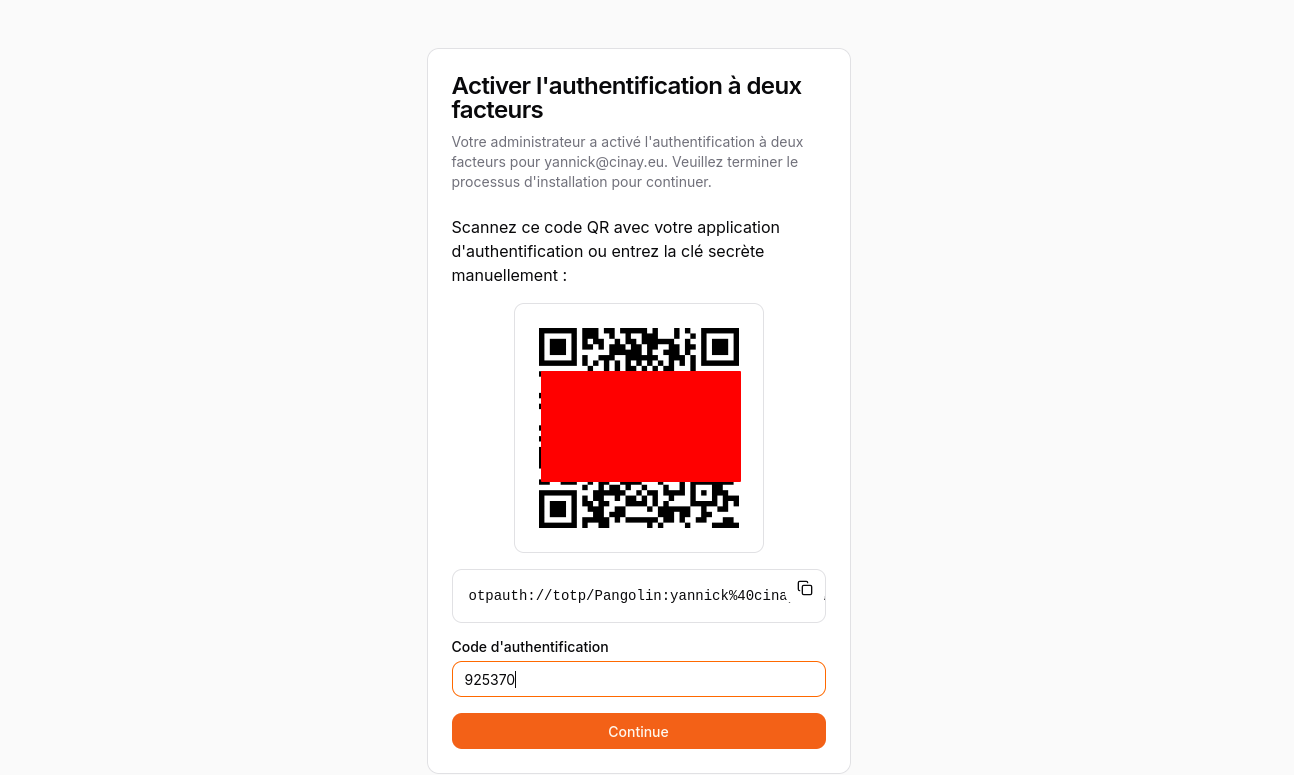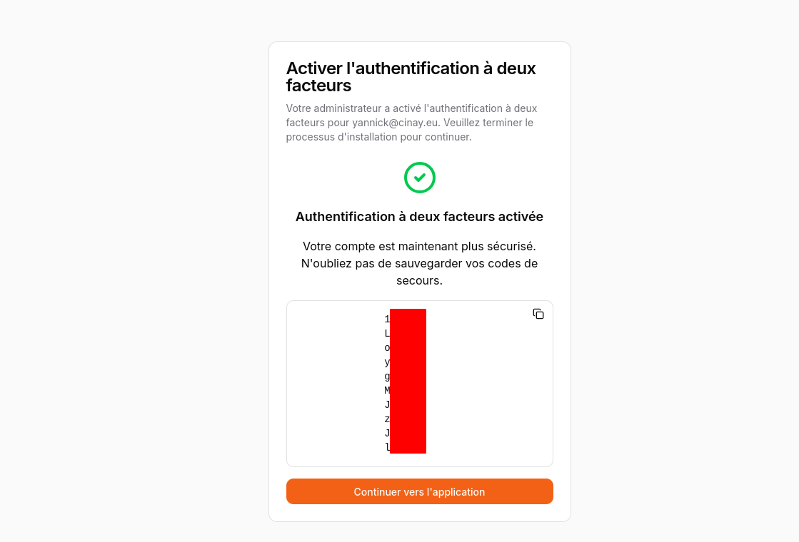 ✅ Support pour l’authentification multifactorielle (TOTP) avec des codes de sauvegarde.