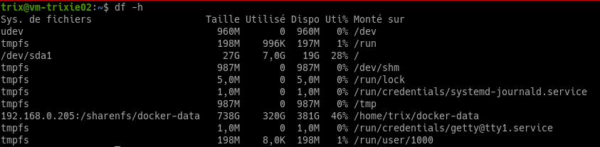 Cela libère de l’espace pour redimensionner /dev/sda1.