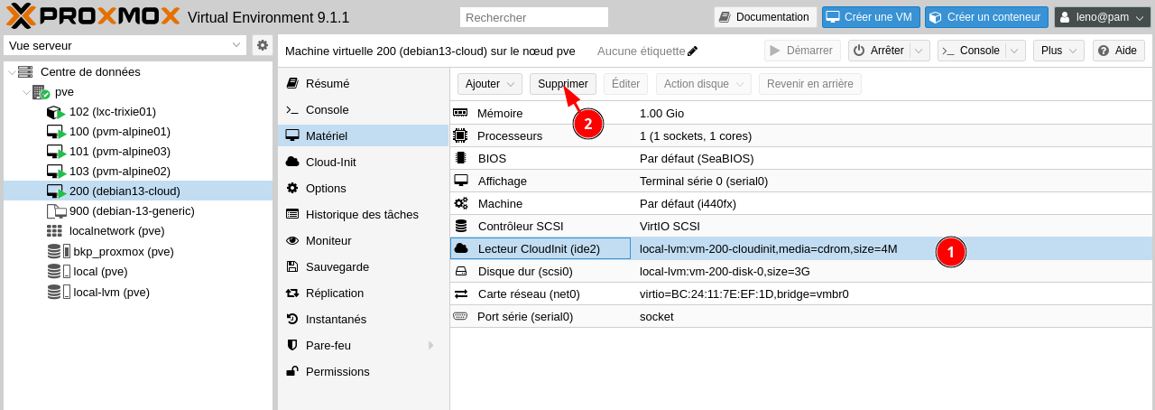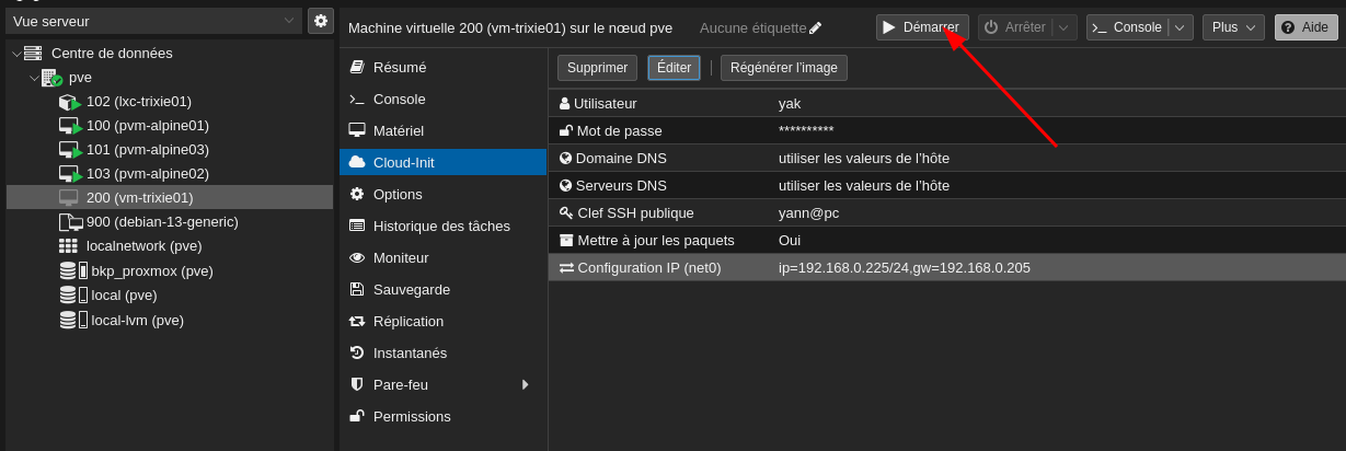 qm clone 900 200 --name debian13-cloud - Une fois les informations renseignées, cliquer sur « Démarrer » :