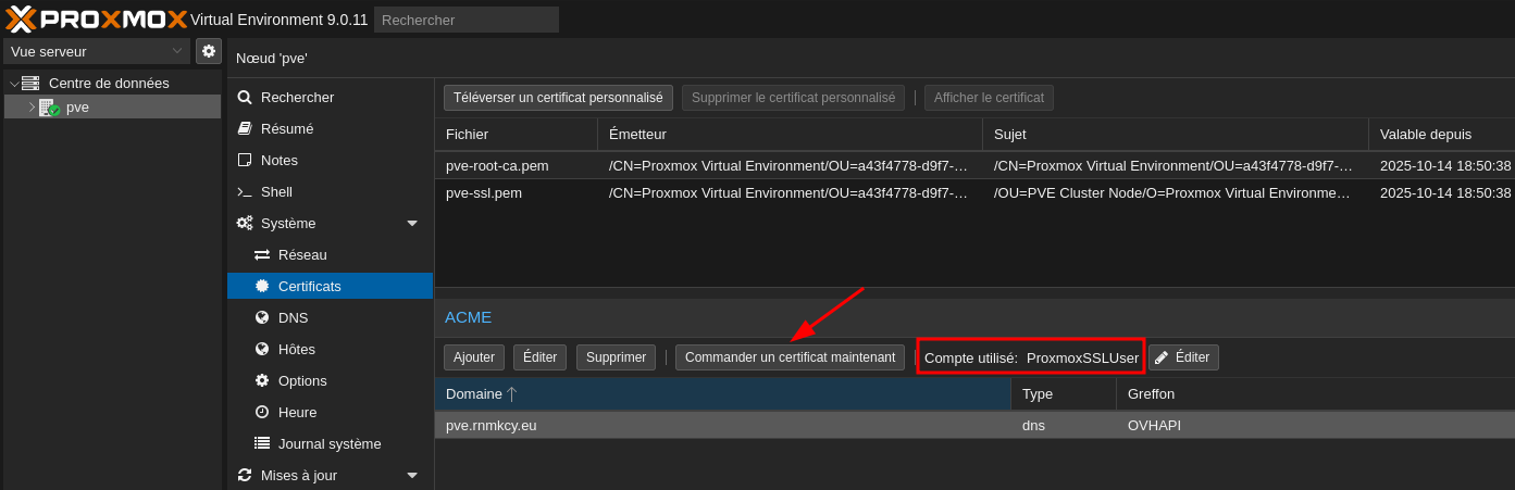 Créer un compte pour gérer les certificats sur notre serveur PROXMOX