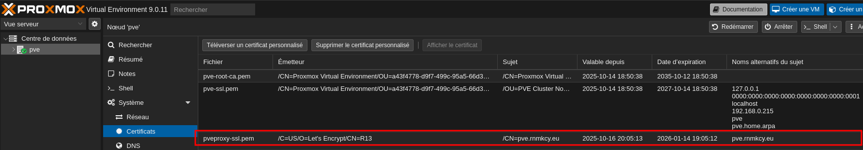 Objectif avoir un certificat valide lorsque l’on ce connecte à son proxmox