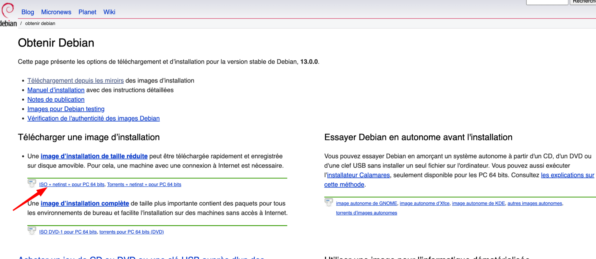 Deux méthodes s’offrent à vous pour ajouter l’image ISO de Debian 13 “Trixie” :