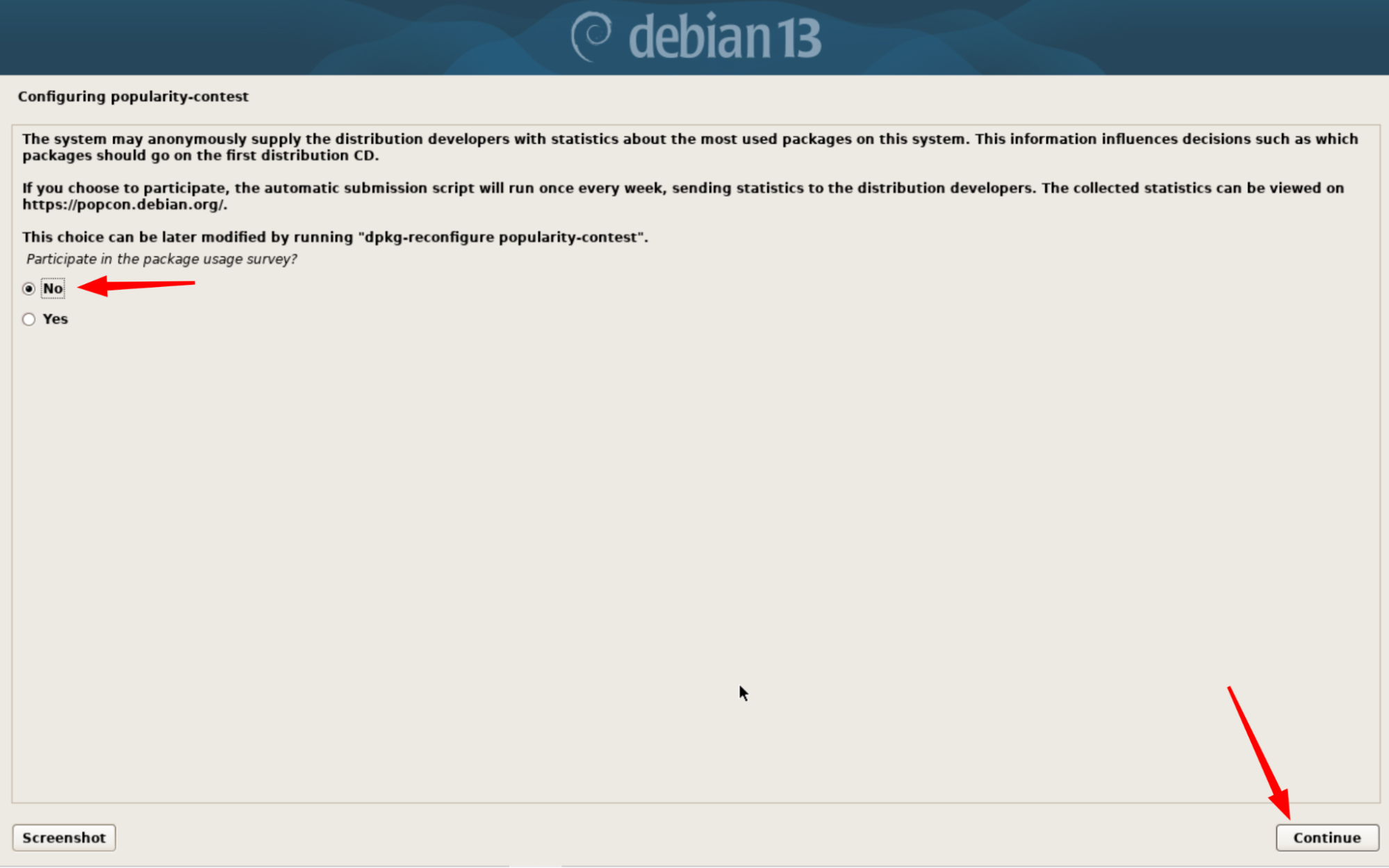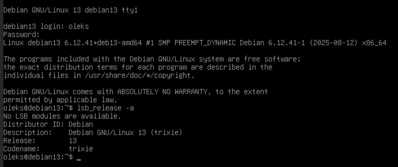 Félicitations ! Debian 13 est maintenant installé avec succès.