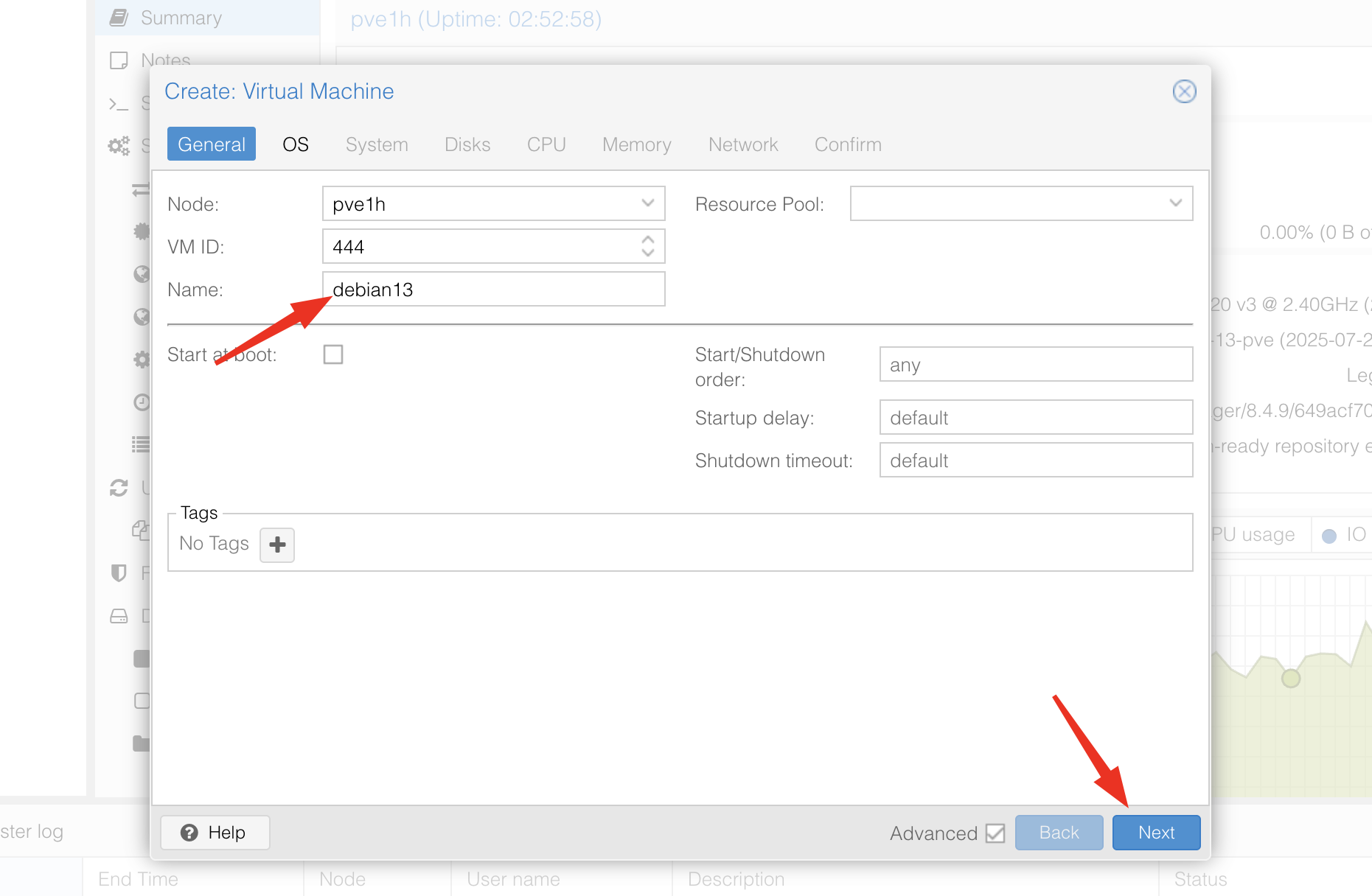 Name : donnez un nom explicite à votre VM, par exemple debian13.