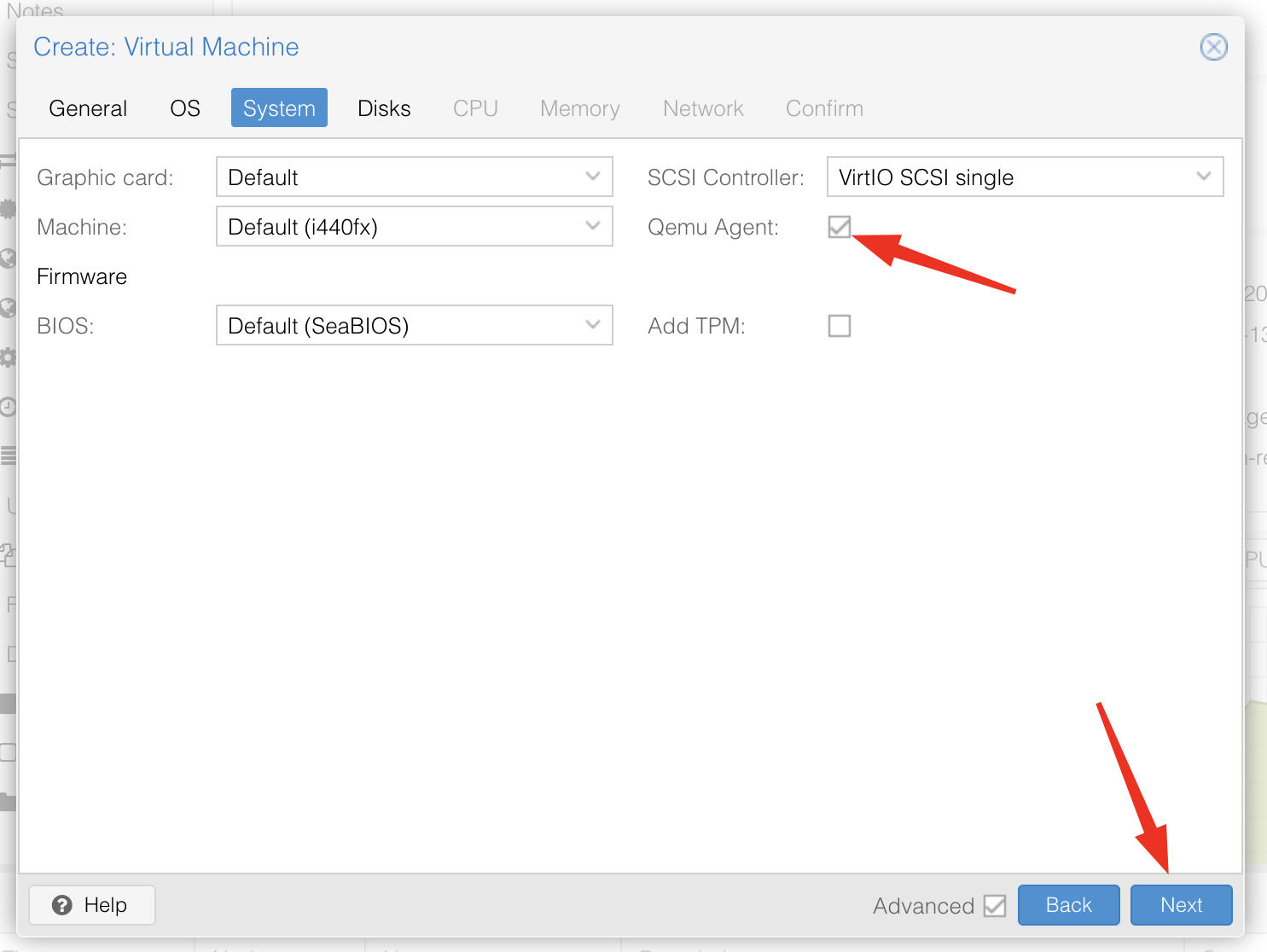 Qemu Agent : coche cette case ! Cela permet à Proxmox de mieux gérer ta VM (comme récupérer son adresse IP ou l’arrêter proprement).