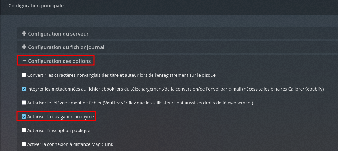 accès à la configuration https://calibre.rnmkcy.eu/config