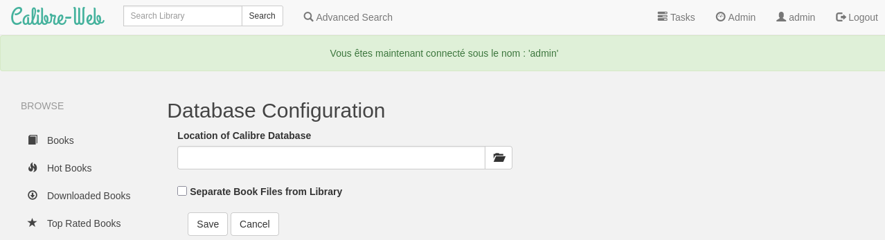 Se reconnecter avec l’administrateur calibre