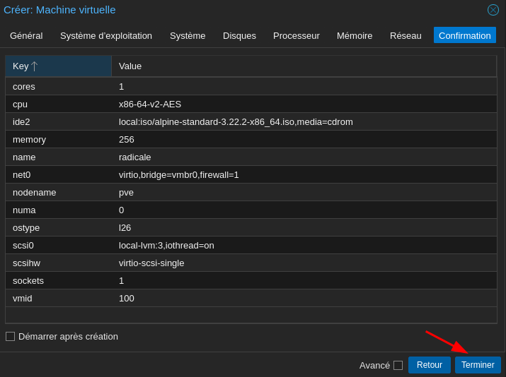 Créer une VM avec alpine3.22 - Modèle (Disque 5GB , Ram 128MB)