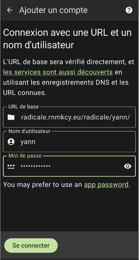 Utilisez le nom d’utilisateur et le mot de passe que vous avez créés dans les étapes ci-dessus pour vous connecter au portail Radicale.